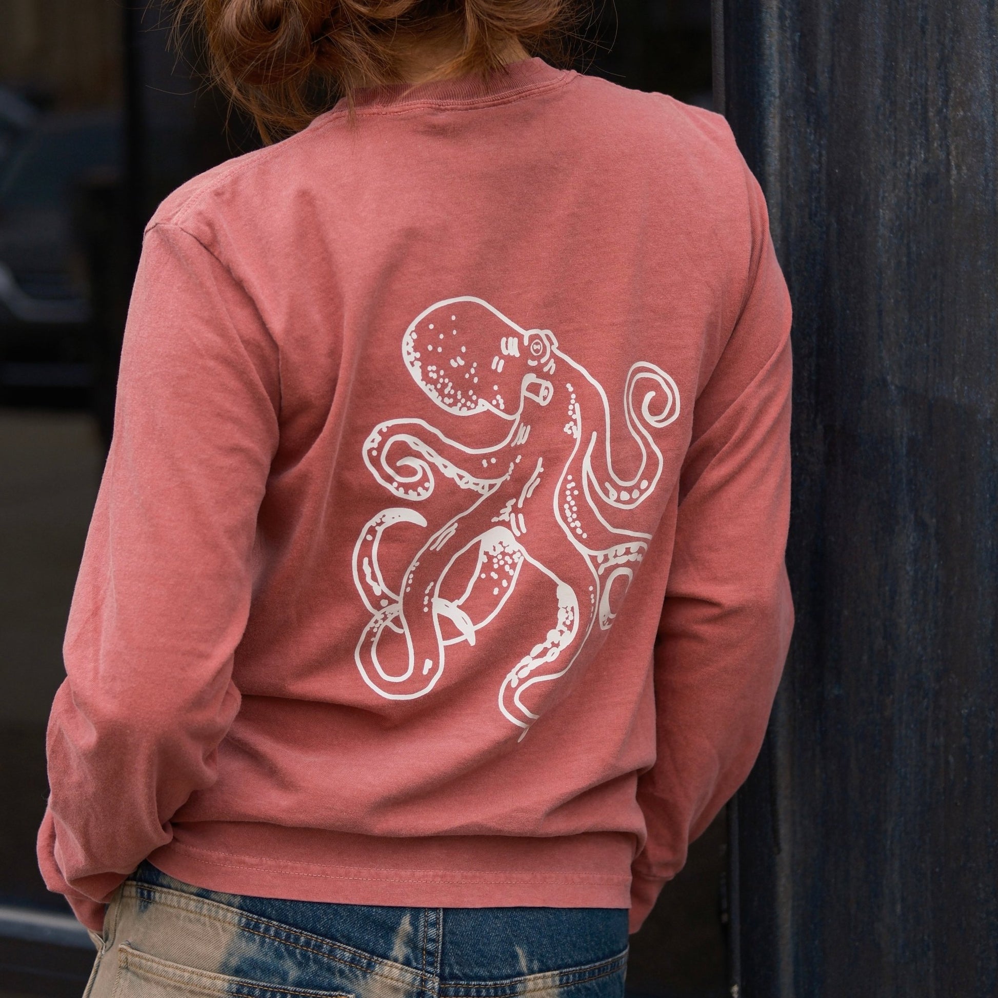 Catch & Release Octopus Heavyweight Long Sleeve T-Shirt: Brick Red